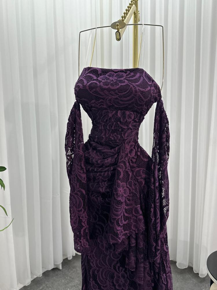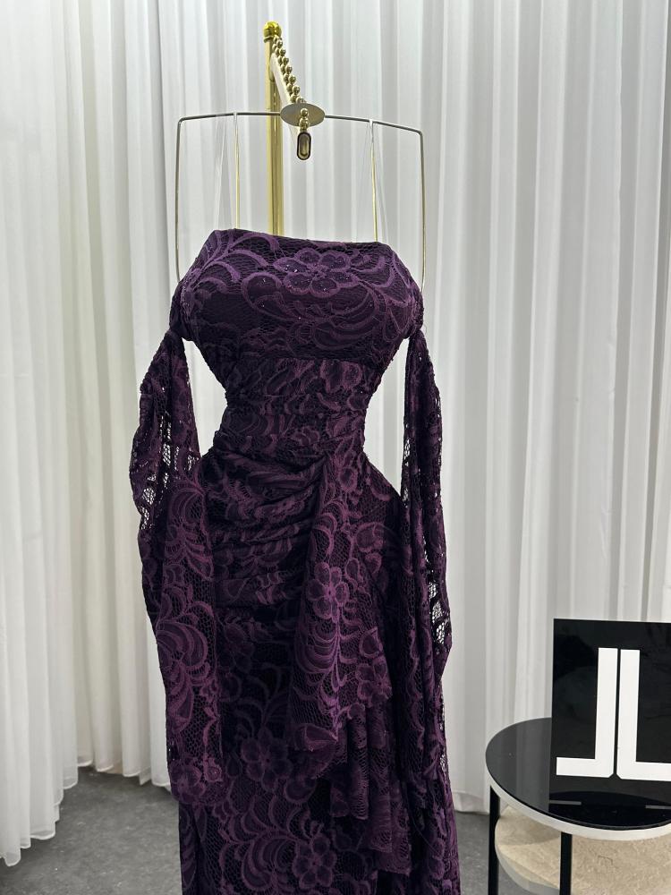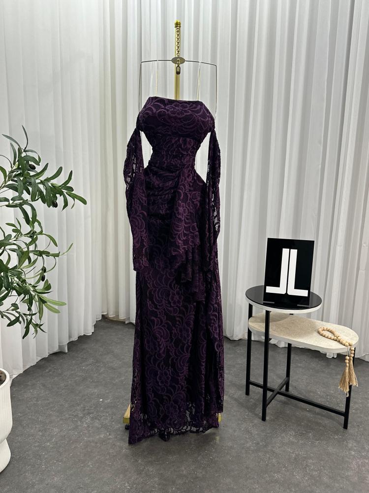 فساتين سهرة طويلة فخمة دانتيل بتصميم أنيق ولمسة أنثوية راقية، يأتي باللون الأرجواني الجذاب ليمنحك حضوراً مميزاً في كل مناسبة. تفاصيل الدانتيل تضيف فخامة ناعمة إلى الفستان، ما يجعله قطعة مثالية للسهرات والاحتفالات الخاصة.