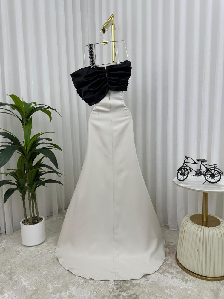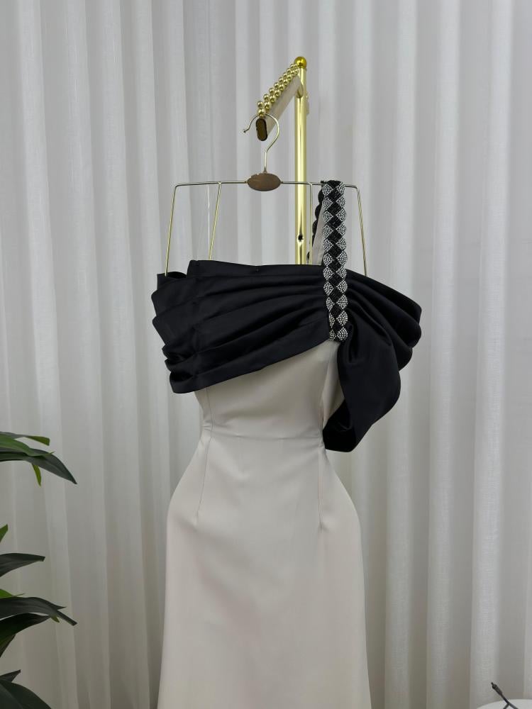 فستان استرتش الأبيض مع تدخيلة سوداء من الصدر يجمع بين النقاء الكلاسيكي والجرأة الأنيقة. تصميم فريد يمنحك حضورًا متوازنًا بين الرقة والتميّز، مثالي للسهرات والمناسبات التي تتطلب لمسة فنية راقية.